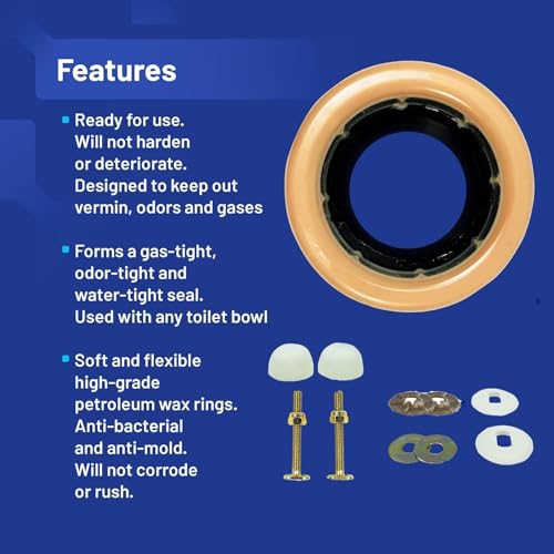 ?Durable, Heavy-Duty Construction?Made from high-density wax with a strong polyethylene flange that resists cracking and warping. Includes solid brass bolts that are corrosion-resistant and rust-proof, providing a sturdier and more reliable foundation than standard plastic hardware.