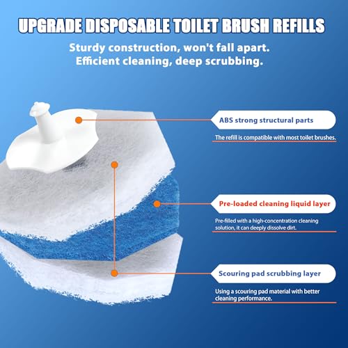 Effortless & Hygienic Cleaning Experience: Simply attach a pre - filled refill to the toilet brush wand, scrub to tackle tough grime and stains, then detach and discard the used head after cleaning. No need to touch dirty brushes, ensuring a mess - free and sanitary cleaning process every time.