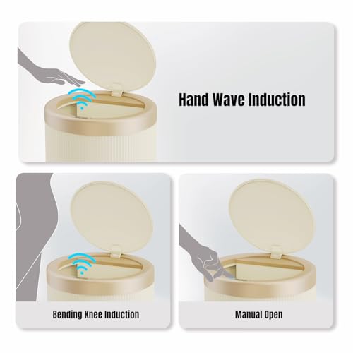 2Pack Automatic Bathroom Trash Can, Touchless Motion Sensor Garbage Can with Lid, Smart Dog Proof Trash Bin, Plastic Wastebasket for Bedroom, Office, Living Room, 2.8 Gallon+3.7 Gallon (Cream White)