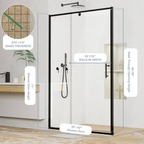 ?Perfect Fit & Modern Pivot Design?: This sleek pivot shower door fits widths from 38" to 42" (height: 71"), ideal for most walk in shower spaces. Its 130° smooth rotation offers spacious entry and a modern look. The matte black glass door frame complements any bathroom style, providing both functionality and elegance.