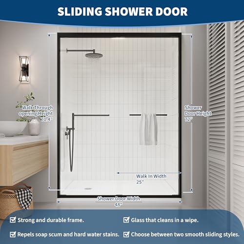 ?Maximize Your Floor Space?: Tired of your bathroom feeling cramped? Our sliding shower door glides open smoothly without needing any clearance zone. It's the ultimate bathroom space saver for tight layouts or shared bathrooms, giving you more room to move.