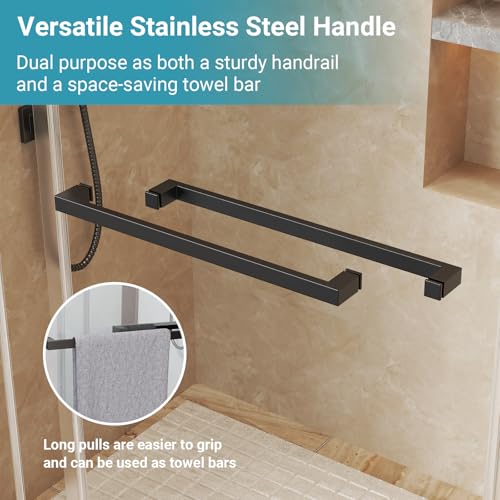 ?48 Shower Door with Sleek Frameless Design?MATDDY frameless shower door creates a spacious look and seamlessly blends with home decor. Its width is adjustable between 44-48 inches via cutting for a perfect fit, and it can be installed easily on left or right openings for layout flexibility.