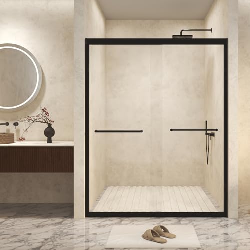 Adjustable Fit: The double sliding shower door offers a flexible width range of 44" to 48", with a guide rail that can be trimmed for a precise, custom fit.