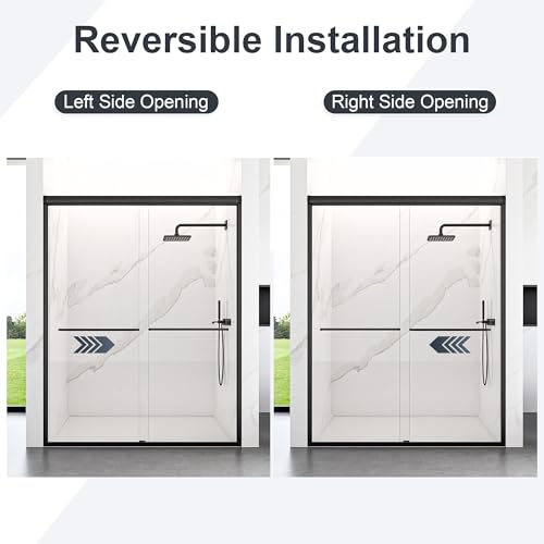 [Better using felling] The double sliding shower door has a reversible sliding function, allowing it to slide to the right or left. When the door is closed, tight-fitting door frame ensures no leaks while taking a shower. The shower doors glass sliding 60 inches has buffer anti-crash corners on each side to protect the shower glass panels, reduce the impact of pulling and pushing operations, and close the glass shower door more quietly and safely.