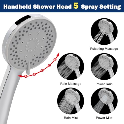 5 SETTINGS HANDHELD SHOWER- NearMoon handheld shower head has 5 functions: Rainfall shower, power massage, waterfall mist, shower with power massage, and shower with waterfall mist. Choosing any setting you will get a waterfall, relax and pleasing shower!