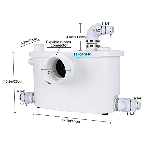 MACERATING TOILET - Install a bathroom wherever you please without worrying about the low water pressure. The HOCANFLO toilet system is economical, space-smart, and easy to install. The unit can pump the effluent upward to 22.9 feet and 229 feet horizontally which make it a must for basement or old house with narrow pipelines.