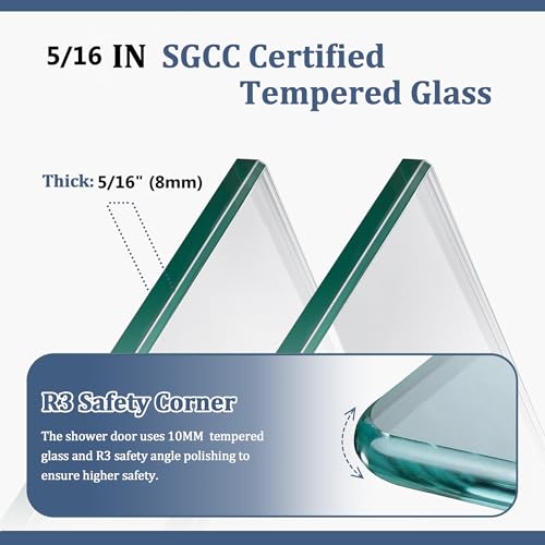 High-Quality Material: Crafted from 5/16 inch (8 mm) tempered clear glass, this glass shower door ensures exceptional durability, safety, and reliability. The single sliding shower door features lightweight and durable stainless steel frame and hardware, ensuring long-term reliability and lasting performance in wet environments.