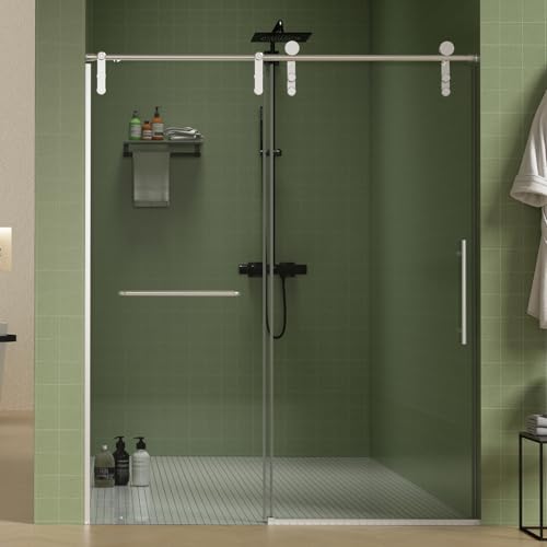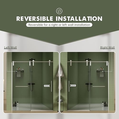 ?SOFT-CLOSE & ANTI-JUMPING SYSTEM?This soft closing shower door 60 inch is designed to glide with automatic anti-collision buffers on each door, no worry about impacting wall or clamping to hurt. Rollers of this shower door come with newest anti-jumping system, provides the most smoothly, effortless, quietly sliding operation for your shower.