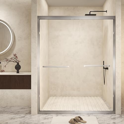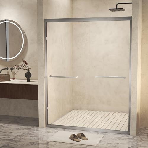 [Elegant Minimalist Style] – With a brushed nickel frame and crystal-clear tempered glass, this shower door delivers a sleek, spa-like look that complements any bathroom décor, from modern to traditional