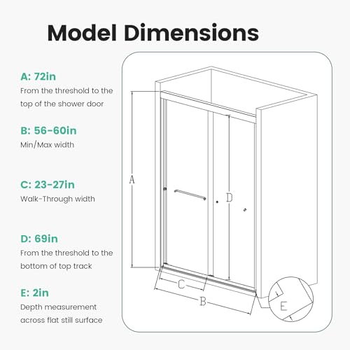 Adjustable Installation: This semi-frameless bypass shower door offers an adjustable installation, allowing you to adjust the width between 56 inches and 60 inches to perfectly fit your space. Its reversible installation design makes it easy to install according to your bathroom layout, ensuring a customized and secure fit every time