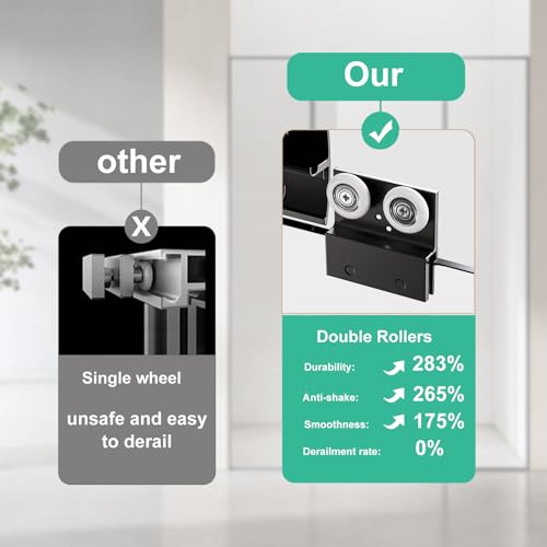 Widened Top Track: Our shower glass door uses a widened top track (2.75*2.95 in), which is much larger than other 1.95*1.95in tracks. This heavy-duty design greatly improves the support force, ensuring that the door is durable, without the risk of deformation, and remains smooth and quiet over a long period of time, even with frequent use