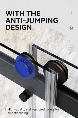Durable & Sturdy Fittings:Sturdy &heavy thick glass.Sturdy stainless steel frame with excellent corrosion resistance.Large solid stainless steel rollers slide smoothly while closing or opening.The track and rolling hardware is sturdy and quiet.jumping design,easy sliding operation.the water sealing strips are flexible and have excellent sealing performance.Premium stainless-steel handles,smooth and rust free,the handles can also be used as towel rack,provides a place to put your clothes & towels