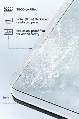 Thickened Safety Tempered Glass?Made from high-quality 5/16" (8mm)SGCC-certified tempered glass for strength and impact resistance.The transparent tempered glass not only has a good visual effect,but is also very durable and provides an excellent sense of security.The surface is covered with explosion-proof film,increase the strength of the glass,avoid the splinters splashing hurt?tempered glass with a protective explosion-proof film ensures minimal debris dispersion in the event of breakage)