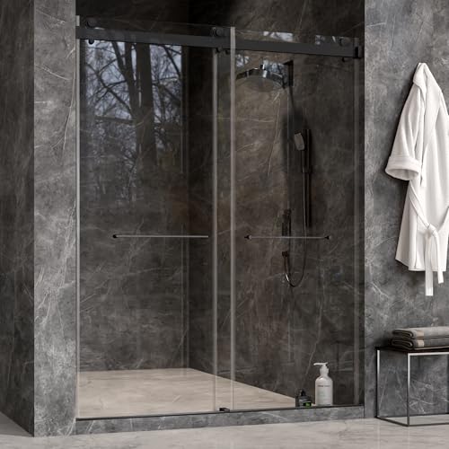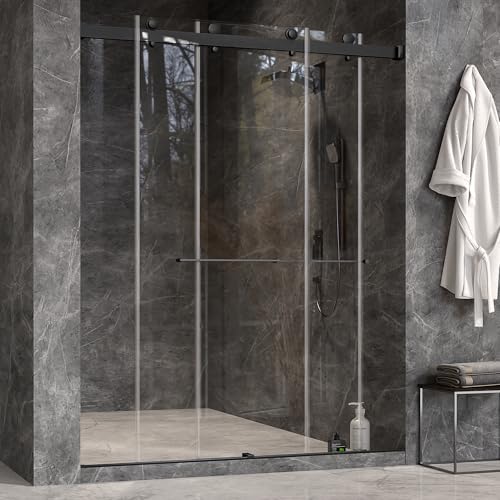 Adjustable Width & Space-saving Design:The frameless shower door can be adjusted between 56"-60" width by cutting the top rail.Providing the perfect fit for your bathroom space.Our innovative design allows for easy installation on both left and right openings,reversible design,high-quality materials make it a versatile and durable choice.The frameless design of the double sliding shower door makes the entire shower space look more open and modern.Door width ensures ease of access and convenience