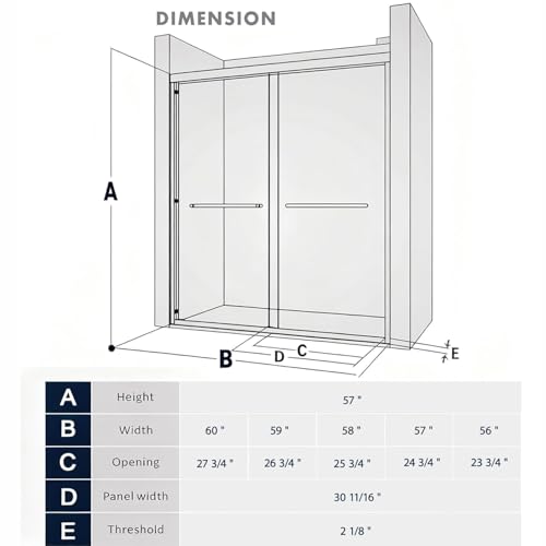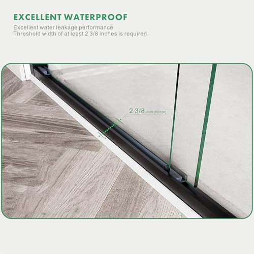 Easy DIY Installation-Get a hassle-free setup with pre-drilled glass and clear user instructions. All necessary hardware is included in the package of the tub shower doors glass sliding 60 inches. (Note: Requires a 2-3/8" deep threshold; shower base not included)