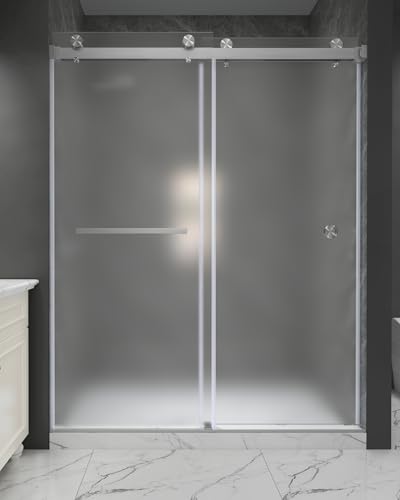 Dimensions and Features: 58-60" W x 76" H Sliding Frameless Shower Door. The walk-in width is 28 5/8" to 26 5/8". Double sliding shower door provides easier access to entry and exit. Suitable for rims with a width of 3 1/2" or greater. Equipped with a buffer device to prevent finger pinching and reduce the risk of glass breakage when closing the door