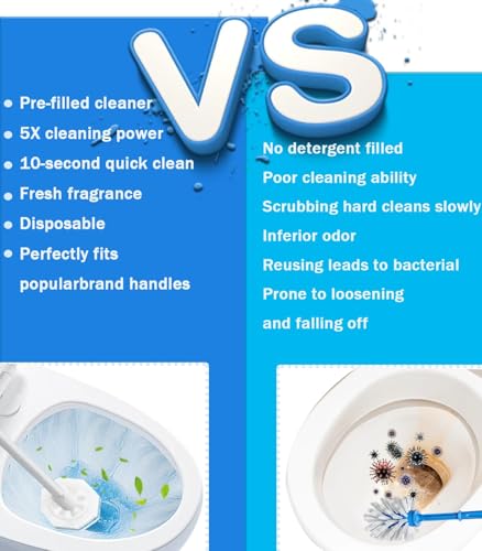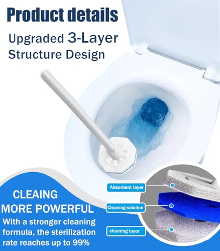 60 Pack Disposable Scrubbing Pads: Toilet brush refills which are pre-filled with cleaning solution, with a three-layer sponge design, easy to replace and ensure worry-free hygiene.