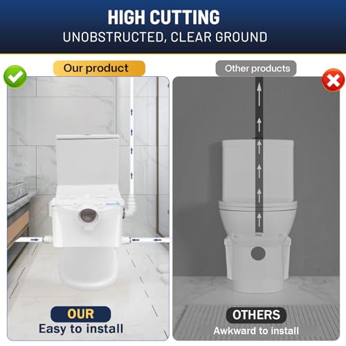 700W Powerful Pump:Our macerator pump adopts a high efficient 700W motor, featuring a vertical pumping up to29.5-Feet and 328-Feet horizontally. The pump can easily and quickly dispose of your wastewater against gravity. Designed to pump away the waste from toilet, washbasin, bidet, shower, kitchen sink, dishwasher and laundry machine and also perfect for basements or other areas where the toilet is below the main line.