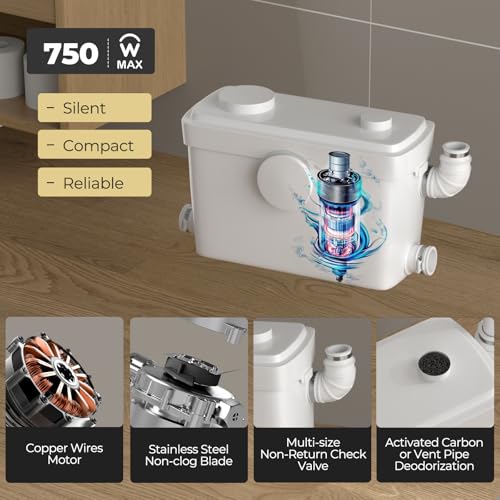 POWERFUL 750W COPPER MOTOR-Engineered with a heavy-duty 750W pure copper motor, this sewage pump delivers unmatched performance with a 36ft vertical lift and 360ft horizontal reach – perfect for basement bathrooms and remote installations. Its industrial-grade construction ensures longer reliable service while eliminating costly plumbing renovations.