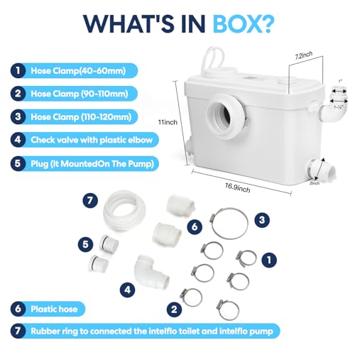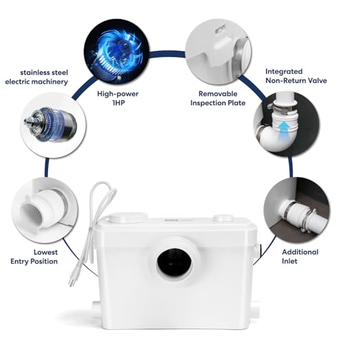 Enhanced Grinding Capability -- The high wattage allows for more efficient grinding of waste, minimizing the risk of clogs and ensuring smooth operation. This makes the pump ideal for handling solid waste, such as toilet paper and other bathroom waste, without compromising on performance.