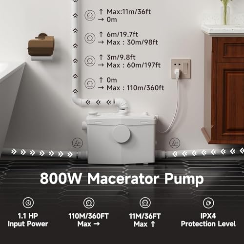 Durable &Low-Noise : Made with high-quality materials and built to last, this macerator pump offers reliable performance and longevity. This 850W water pump adopts a copper wire motor, which has a lower noise level and more powerful performance. The noise level is below 39 decibels, so there is no need to worry about disturbing family rest.