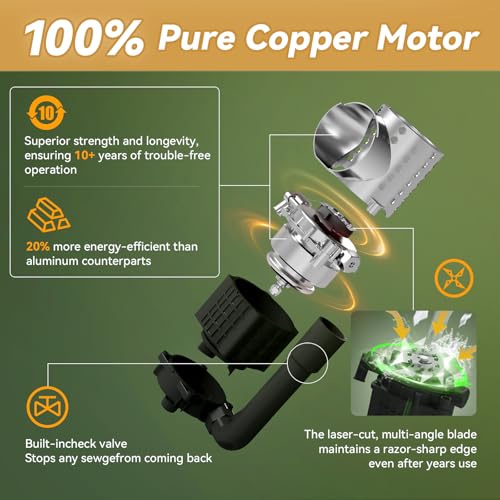 BUILT TO OUTLAST -- Crafted with 1280°C fired ceramic glaze, 304 stainless steel grinding blades, and IP68 waterproof electronics, this toilet withstands decades of heavy use. Its triple-layer macerator chamber resorts 83% higher impact resistance than plastic composting units, while the -22°F to 176°F temperature tolerance ensures reliability in extreme climates—a true lifetime investment.