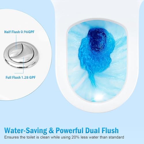 COMPACT TOILET BOWL FOR SPACE-SAVING: Experience maximum comfort with our spacious round toilet bowl. With all accessories included, installation is quick and convenient, without the need for wall demolition or extensive modifications. Plus, the toilet comes with a soft-close seat to eliminate the annoyance of a slamming seat.