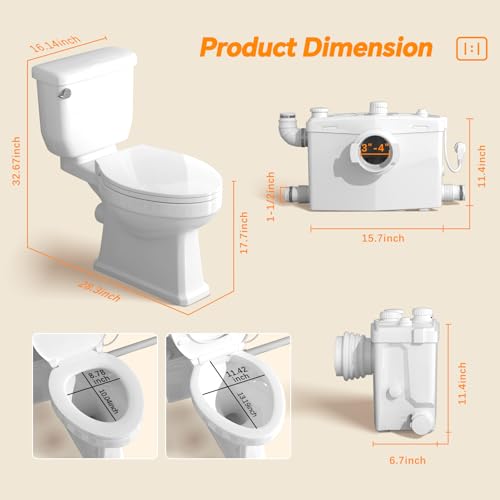 ?Flexible Installation with Extension Pipe?This innovative system includes an extension pipe kit, allowing you to discreetly conceal the pump unit behind walls for a clean, built-in look. The upflush technology eliminates costly plumbing modifications while maintaining full functionality - simply connect to existing 2-inch or larger discharge pipes. The package provides everything needed for both exposed and concealed installations.