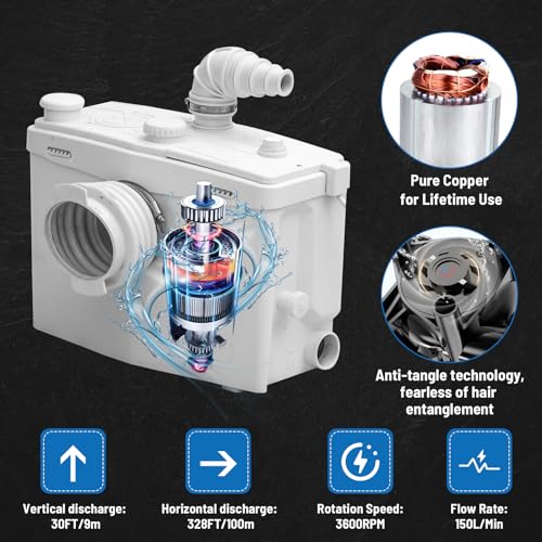 Quiet Flushing and Easy Clean-- Our high-quality sewerage pump has a good performance on quiet operation with low noise. Pour the activated carbon powder into the vent; you will get smell-less and fresh air in your bathrooms or kitchens. Made of durable PP material, the pump has the water-proof standard of IPX4. Designed for quick and hassle-free installation, requiring minimal tools and expertise.