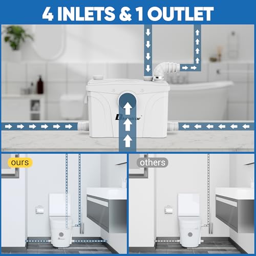 ?Macerator Pump with No-clogging? The macerator pump is equipped with stainless steel non-clog impeller blades can easily crush the waste and effectively prevent the toilet From clogging and keep the water flowing smoothly.