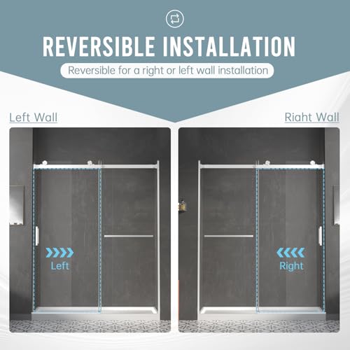 ?Adjustable Width?Our glass shower doors are designed to fit a wide range of installations, and the top rail and bottom rail can be customized to fit the width of the shower enclosure from 56-60”.