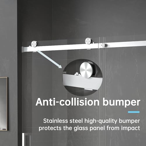 ?Enhanced Bathroom Safety? Our shower door has a buffer on the top guide bar to prevent the glass from hitting the wall.To ensure the safety of users in the shower, our shower doors are made of 5/16” (8mm) thick tempered glass and have been certified by SGCC.