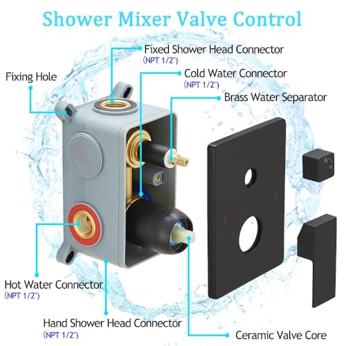 ?MATTE BLACK FINISH?: Elegant matte black finish and sleek appearance make the shower system complement any decor. In addition, our products are made of high-quality materials that are rust-resistant and durable. Let you enjoy a luxurious rain shower.