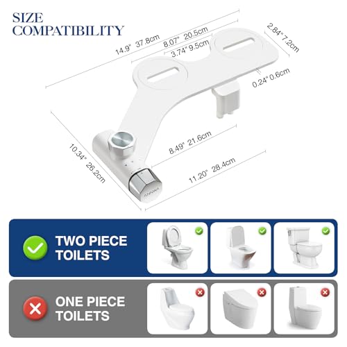 Easy to Install: This non-electronic bidet comes with high-grade accessories and is compatible with most 2-piece elongated or round toilets. It can be easily installed in standard toilets within minutes, without the need for a plumber.
