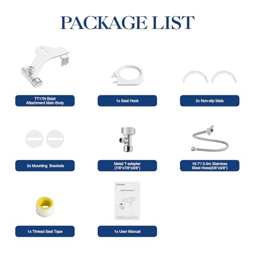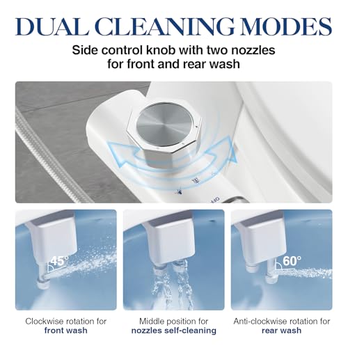 A Better Refreshing Clean Experience: ANNWA ultra-slim bidet attachment is expertly crafted from durable ABS material and includes a user-friendly control knob. This cold water bidet attachment is equipped with premium valves, stainless steel T-adapter, and braided steel cold water hose, ensuring enhanced durability and performance.
