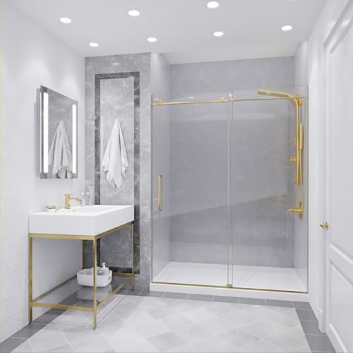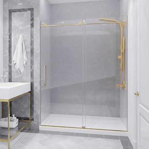 Stunning and vibrant Brushed Gold hardware finish and pristine clear glass