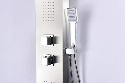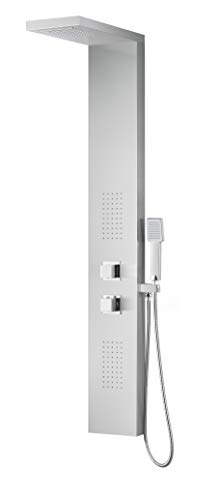 INCLUDES: One (1) Expanse Full Body Shower Panel, one (1) Heavy Rain shower head with cascading waterfall, two (2) Acu-Stream body jet sets, one (1) Euro-Grip free range hand sprayer, one (1) owner's manual