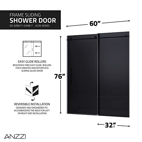 CRAFTED FROM THE FINEST MATERIALS : The ANZZI Leon series features a modern marriage of tempered, crystal clear, tinted shower glass door panels with premium aluminum RHINO ALLOY approved shower door rollers parts in beautiful modern matte black and shower door seal strip