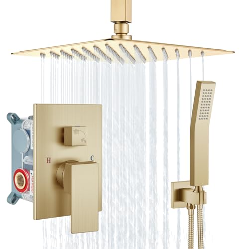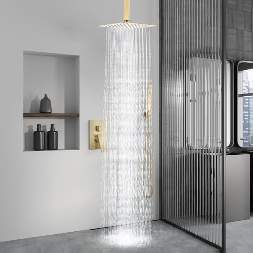 ?12 Inch Ceiling Shower Head?: large 12-inch raining sprinkler mixes water with air to increase the water pressure to 100%, and simulates the natural raining to provide you with natural contact of water experience.