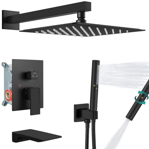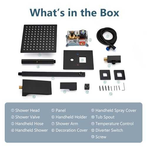 Shower and Tub Faucet Set Include: Rainfall shower head and 2 in 1 handheldshower,wall mount shower arm,59“ shower hose, handheld shower bracket, tub spout,and brass shower valve with 3-way diverter,Come with clear instruction