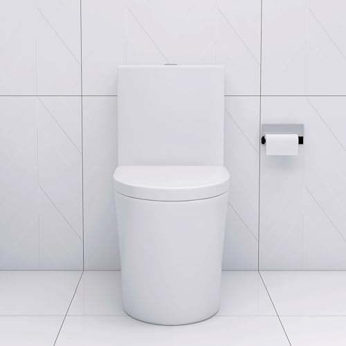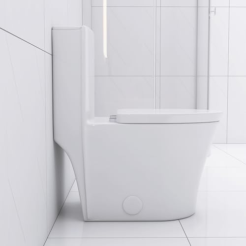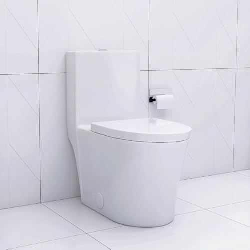 MODERN DESIGN: Glossy white porcelain one-piece toilet with a stylish golden button adds sophistication and elevates any contemporary bathroom decor.