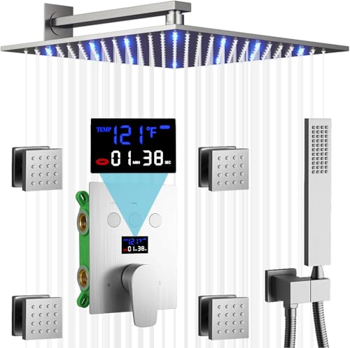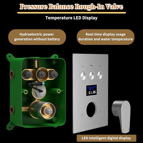 INNOVATIVE DIGITAL DISPLAY? Our smart shower system can show you the temperature of the water and shower head timer can help you to find the most comfortable water temperature. It adopts the North American standard Fahrenheit temperature display design Safe to use and no need battery
