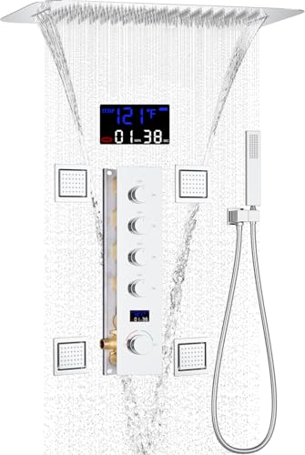?Luxury Shower System with LED Temperature Display?——Show you the temperature of the water and time of use, which can help you to find the most comfortable water temperature and Control your bath time. No electricity no battery, powered by water flow, you can open one function at one time