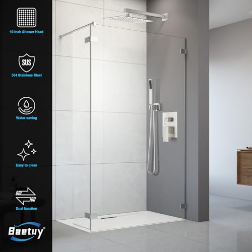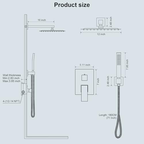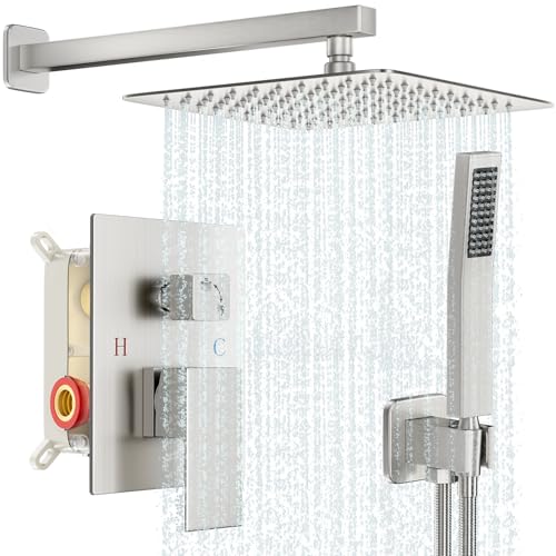 SHOWER HEAD COMBO: All-metal sturdy construction. Mixing valve made of solid brass, 304 stainless steel rain shower head and self-cleaning silicone nozzles. Provide excellent water coverage, anti-clogging, easy to clean, anti-oxidation and corrosion resistance.