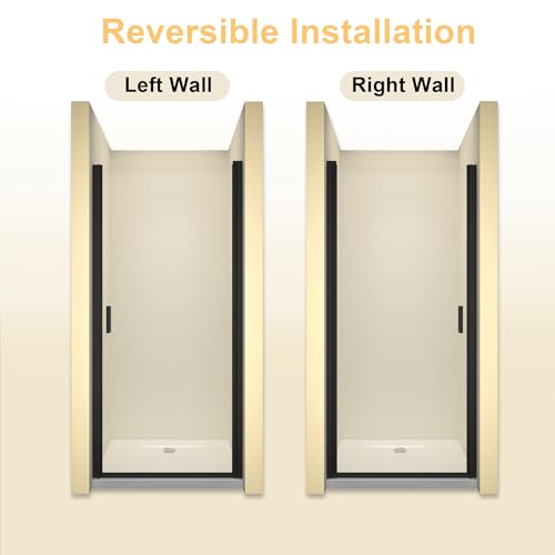 ?Easy Installation? The pivot door can be installed on both left and right side of the wall, provides more flexibility to fit all bathroom decor. The door can be pulled in or out depending on your specific need, the opening angle is 90°.
