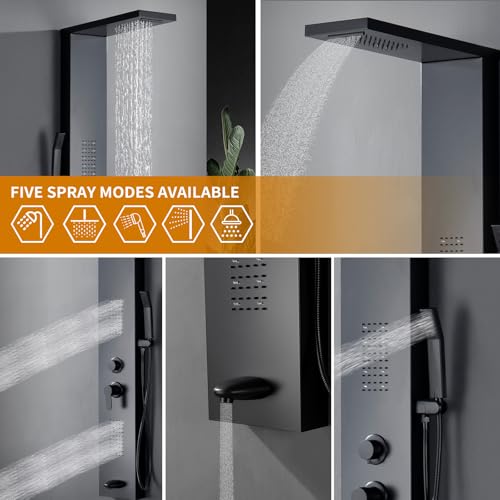 ?304 Stainless Steel Shower Panel?Shower tower construction of rust-proof 304 steel thickened panel,brass mixer valve,shower diverter valve and explosion-proof hoses make this shower column stable and reliable.
