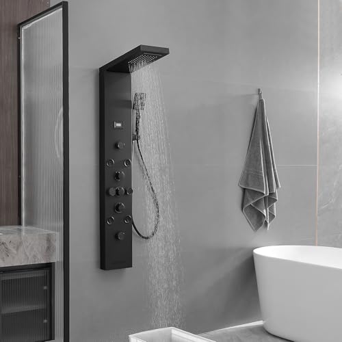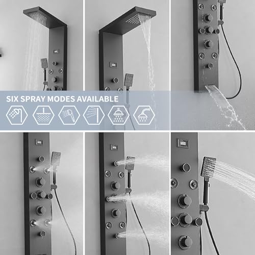 ?Digital Screen?The digital temperature display on the shower panel tower system directly and instantly,makes water temperature visible.It's powered by 2 AA batteries(not include).