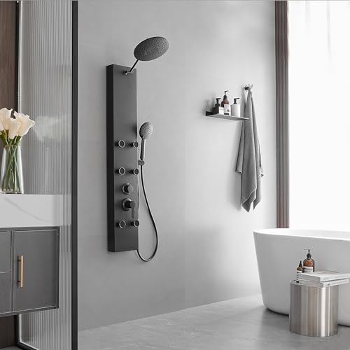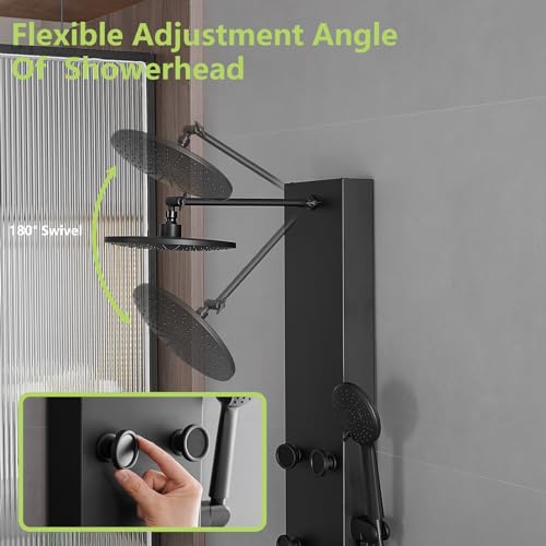 ?Premium Quality Material?The shower panel is made of Grade 304 stainless steel with thickened panel, brass mixing valve and shower diverter valve included, explosion-proof hoses and decorative top cover will make this shower a great upgrade to your batheoom.