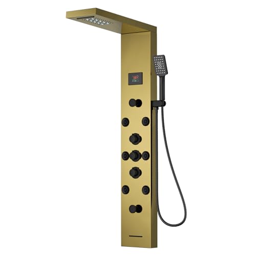 ?Premium Quality Material?The shower panel is made of Grade 304 stainless steel with thickened panel, brass mixing valve and shower diverter valve included, explosion-proof hoses and decorative top cover will make this shower a great upgrade to your batheoom.