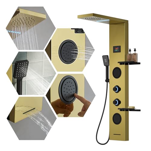 ?Premium Quality Material?The shower panel is made of Grade 304 stainless steel with thickened panel, brass mixing valve and shower diverter valve included, explosion-proof hoses and decorative top cover will make this shower a great upgrade to your batheoom.